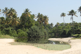 I will not bother you with too much detail of the treatment. The main aim of a Panchakarma treatment is to get rid of the toxines, to rejuvenate the body and to bring the 3 doshas (this is more or less your constitution type in the Ayurveda medicine) into a balance. They do this with a special diet, massage, other body treatments (like oil baths, bodypacks, steambath, etc.), yoga and medication. First, the doctor feels your puls to diagnose your problems and then puts together an individual programme. As I was still very week I only had a soft version of the treatment which was still quite tough sometimes. I got lot of medicines, some really have such an awful taste, it is pure self control to swallow it all down. The programme kept me quite busy. It started normally at 7 am with yoga and ended at 4 pm with a treatment. In between I had enough time to relax, swim in the sea and eat. Every day the doctor came to see me, to check how I am going, to calm me or to motivate me. After a couple of days a could already feel some changes in my body. This was not always nice. Sometimes I just slept in the hammock all day, to weak to do anything else. Some days I did long walks on the beautiful beach or I went to town, just to see something else in between. One oft the most important things every day was the talk about the digestion. Having had 3 abdominal operations I was used to talk about my poo - but still, as english is a foreign language for the doctors and me, we sometimes had a good laugh - but no more details on that...