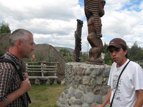 liegende Museum Inti Nan - dem wirklichen Aequator (also der ohne Kommerz, mit weniger Gringos). Dieses Museum hat uns absolut begeistert. Wir hatten eine Privatfuehrung mit Pablo, einem absolut lieben, lustigen Kerl. Ganze 2 Stunden verbrachten wir dort, bis die Sonne uns fast verbrannt hat. So praktisch ja die kurzen Haare sind, der Sonnenbrand auf der Kopfhaut war recht unangenehm. Nachdem wir uns beim Pfeilschiessen zum Affen gemacht haben, konnten wir aber nochmals mit Geschick glaenzen. Direkt auf demm Aequator gelang es uns beiden, ein rohes Ei auf einen Nagel zu stellen. Wir bekamen dafuer sogar ein Zertifikat. Das passt prima in die naechsten Bewerbungsunterlagen :-).